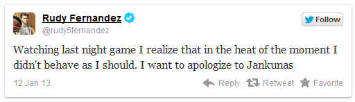 Un prim pas spre normalitate a fost făcut prin prezentarea scuzelor. Problema este că valoarea acestor cuvinte scade simțitor în condițiile în care vorbim despre un jucător care nu se sfiește să apeleze la gesturi impardonabile pentru ca după meci să-și ceară scuze. Oare cum ar arăta un meci de baschet dacă toți jucătorii s-ar comporta ca și Rudy Fernandez?