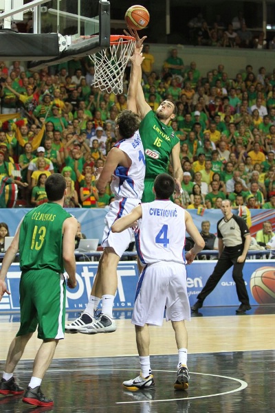 Posesor al unei tehnici de pivot cum rar se mai întâlneşte la jucătorii înalţi, Valanciunas (2.10 metri, 19 ani împliniţi, jucător al echipei Lietuvos Rytas Vilnius) a avut o linie statistice de invidiat cu 23.0 puncte, 13.9 recuperări, 1.0 pase decisive şi 3.2 capace în medie pe meci pe parcursul celor nouă partide jucate la mondialul din Letonia. El a totalizat 36 puncte şi 8 recuperări în finala competiţiei, câştigată de Lituania în faţa Serbiei.