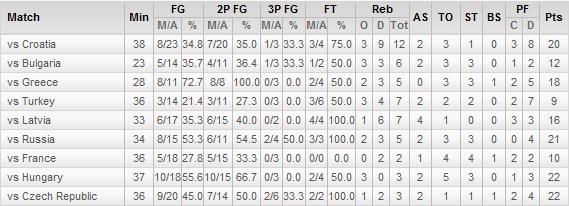 Linia statistică a lui Salvadores în cele nouă meciuri susținute la CE U16: