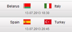 Semifinalele sunt programate pentru sâmbătă (13.07). Împerecherea este următoarea: