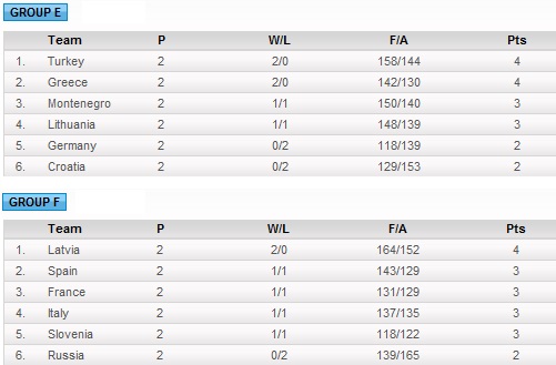 Primele patru în fiecare grupă avansează în sferturile de finală.