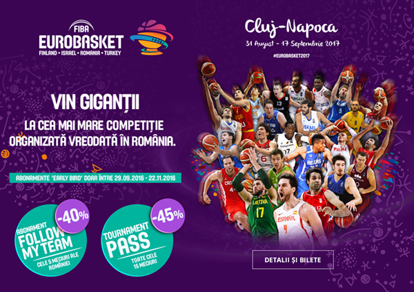 Astăzi, 29 septembrie, au fost puse în vânzare biletele pentru EuroBasket 2017, inclusiv pentru partidele găzduite de Sala Polivalentă din Cluj-Napoca. Există două pachete de bielete, denumite Follow My Team și Tournament pass.