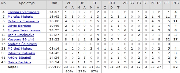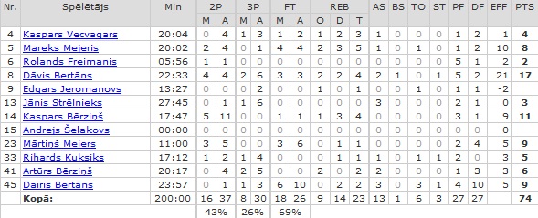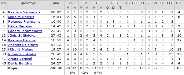 În ziua a doua, letonii au fost spulberați de Polonia cu scorul de 99-74. Statistice balticilor în acest meci:
