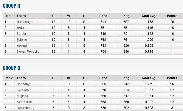- Grupa A: Muntenegru, Israel, Serbia