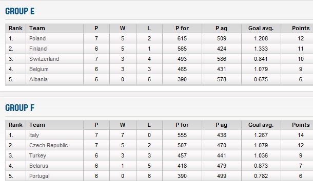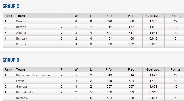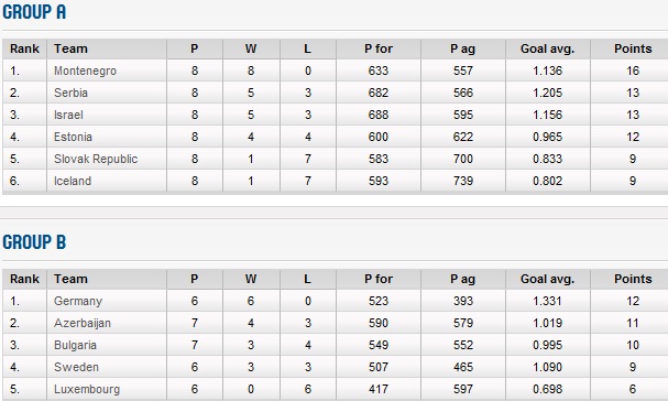 Cu două serii de meciuri rămase de disputat în fiecare grupă se cunosc următoarele echipe calificate: Muntenegru, Italia, Croatia, Ucraina și Germania.