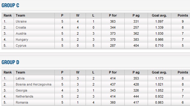 Situația în cele șase grupe de calificare după meciurile disputate joi (30.08), în campania de calificare la EuroBasket 2013, se prezintă în felul următor: