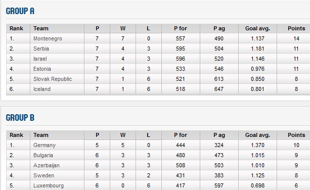 Dupa runda a 7-a, se cunosc deja patru calificate: Muntenegru, Italia, Croatia si Ucraina. Alte echipe sunt foarte aproape de a-si asigura locul la turneul final din Slovenia.