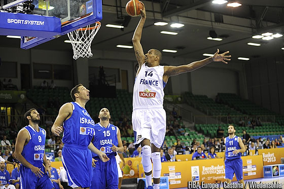 La finalul penultimului act, Franța a reușit să se desprindă la 22 de puncte pe tabela de marcaj, scor 65-43. Ultimul sfert a fost câștigat de Israel, Franța impunându-se cu scorul de 82-63.