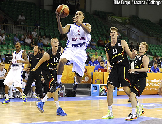 Penultimul act a fost unul foarte strâns, după 30 de minute de joc, scorul era 59-56, în favoarea britanicilor. Germania a făcut un ultim sfert bun, însă aceștia au cedat, Marea Britanie impunându-se cu scorul de 81-74.