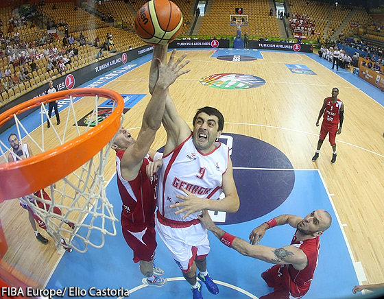 După un start letargic de partidă din partea ambelor echipe, Sanikhidze înscrie o aruncare de trei puncte cu 6:06 rămas în primul sfert urmată la rândul ei de un lay-up al echipei georgiene, acestea fiind primele lor puncte marcate din teren. Maciej Lampe a fost fluierat devreme pentru două faulturi, iar Marcin Gortat căuta ajutor din partea perimetrului, dar fără niciun efect – Polonia a avut 0/10 la aruncările de 3 puncte. Pe măsură ce partida avansa, Georgia prelua tot mai mult controlul. În momentul în care Giorgi Shermadini a trimis Georgia la 29-20 după un slam-dunk, polonezii au cerut timp de odihnă, însă fără niciun efect. Polonia a continuat să cedeze uşor posesia, iar o aruncarea de 3 puncte a lui Besik Lezhava pe contraatac a trimis Georgia la 38-22 cu puţin timp înaintea pauzei. La startul celui de-al treilea sfert al întâlnirii se putea spune din expresia jucătorilor ambelor părţi că o revenire nu poate fi luată în calcul. Polonia a reuşit să reducă deficitul cel mult până la 15 puncte în a doua repriză, Georgia reuşind cu uşurinţă să câştige partida.