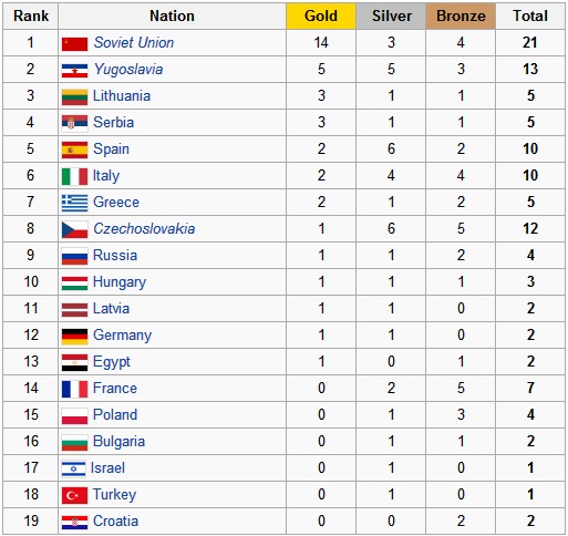Cea mai titrată echipă este Uniunea Sovietică. Între echipele naționale care mai pot strânge la zestrea deja existentă cele mai titrate sunt Lituania și Serbia, ambele cu câte trei medalii de aur.