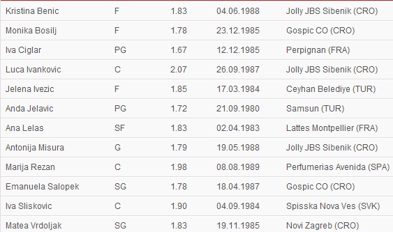 4 ani în urmăStipe Bralic, antrenorul principal al echipei naționale a Croației a definitivat lotul pentru turneul final al Campionatului European de baschet feminin ce va demara pe 15 iunie în Franța. Componența lotului este următoarea:
