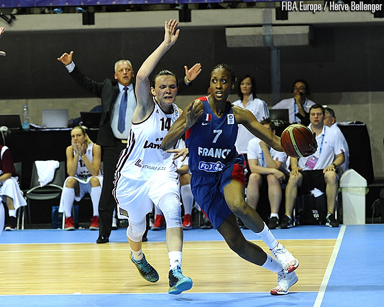Isabelle Yacoubou a avut 17 puncte, 4 recuperări, Endene Miyem a adăugat 9 puncte, iar Sandrine Gruda a terminat cu 9 puncte, 6 recuperări pentru Franța. În replică, Elina Babkina a terminat cu 11 puncte. Fosta jucătoare a lui CSM Târgoviște a fost singura din lotul Letoniei care a terminat cu cel puțin 10 puncte marcate.
