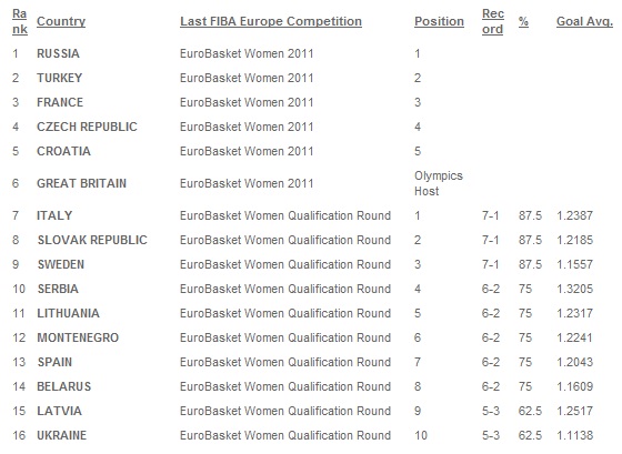 4 ani în urmăFIBA Europe a dezvăluit lista capilor de serie în vederea tragerii la sorți pentru grupele fazei preliminare de la Campionatul European de baschet feminin - ediția 2013.