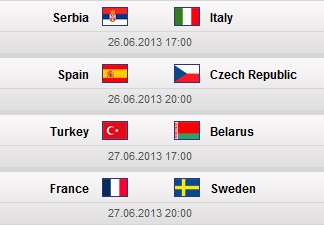 Programul sferturilor de finală, programate pentru 26 și 27 iunie, este următorul: