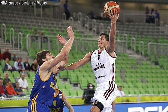 Naționala Letoniei a început în forță partida, reușind să își creeze un avantaj de 13 puncte, după zece minute de joc, scor 24-11. În sfertul secund, aceștia și-au majorat avantajul la 20 de puncte, scor 42-22, la pauză. Ucraina nu a reușit să mai pună probleme Letoniei până la final, scorul fiind 85-51.