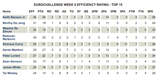 Printre cei ai eficienți zece jucători ai etapei cu numărul 5, și-au făcut loc și trei jucători care evoluează la echipele românești. Radovan Markovic, Sean Denison și Goran Martinic au fost în mare formă la mijlocul acestei săptămâni.