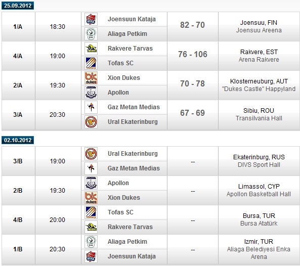 4 ani în urmăRezultatele primei manșe, desfășurată marți (25.09), respectiv programul jocurilor din manșa a doua din cadrul turneului preliminar al FIBA EuroChallenge: