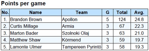 Lista primilor cinci marcatori ai EuroChallenge după trei etape desfășurate în prima fază a întrecerii este următoarea: