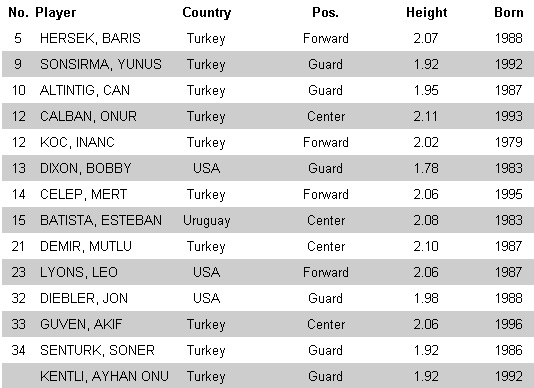 Lotul de jucători cuprinde trei jucători americani, un uruguayan și 11 baschetbaliști autohtoni. Componența acestuia:
