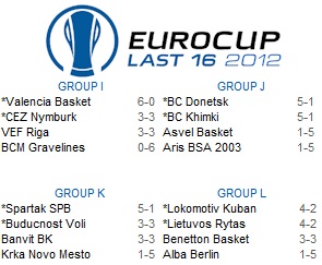 4 ani în urmăÎn urma rezultatelor înregistrate în ultima etapă din faza a doua în EuroCup s-a ajuns la următoarea configurație a clasamentului în cele patru grupe: