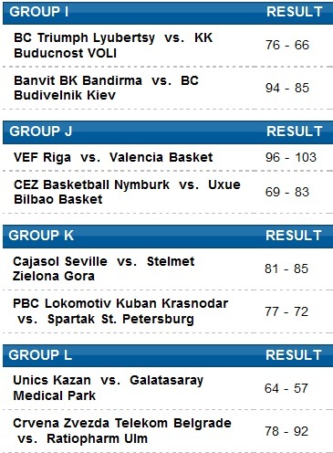 Lokomotiv Kuban, Spartak St. Petersburg, Ratiopharm Ulm și Unics Kazan s-au calificat în sferturile de finală.