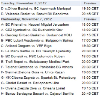 EuroSport 2 vă invită în fața televizoarelor, întrucât va transmite două meciuri din prima rundă. Astfel, marți (06.11) puteți urmări duelul dintre Valencia și Banvit, de la 21:45 (ora României), iar miercuri (07.11), vă este oferit duelul dintre Trefl Sopot și Galatasaray Istanbul, cu începere de la ora 21:00 (ora României).