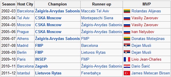 Turneul NIJT este organizat de Euroligă din sezonul 2002/03. Iată lista precedentelor câștigătoare, finaliste și a celor mai buni jucători ai turneului: