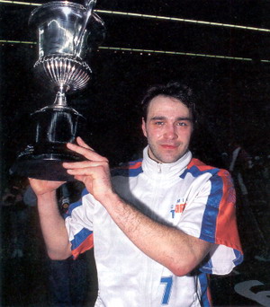 Pablo Laso în anul 1995, ridicând Cupa Spaniei, după ce a fost ales MVP al finalei acestei competiții