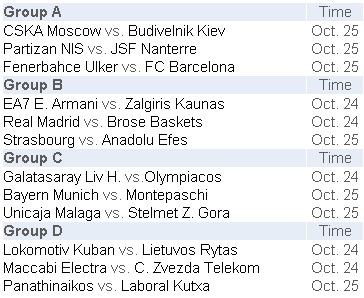 Euroliga masculină - Etapa 2 - Program
