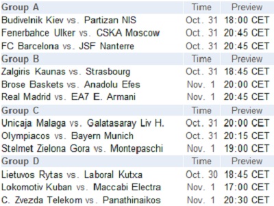 Euroliga masculină - Etapa 3 - Program