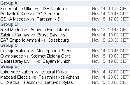 Euroliga masculină - Etapa 5 - Program
