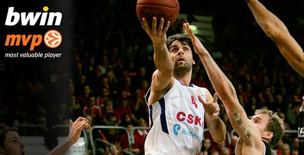 Milos Teodosic, fundașul lui CSKA Moscova, a fost desemnat cel mai bun jucător al etapei a 8-a în sezonul regulat al Euroligii masculine - ediția 2012/13. Sârbul a avut o prestație ofensivă de excepție în confruntarea cu Brose Baskets Bamberg.