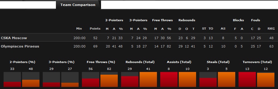 Olympiacos - Hines 7 puncte, 4 recuperări și o defensivă 'câinească'. Law și Printezis 6 puncte fiecare.