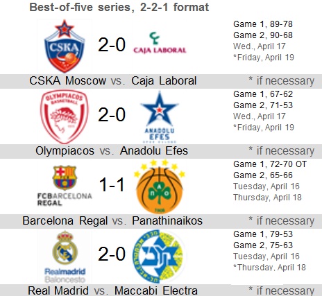 Euroliga masculină - Playoff, Meciul 2 - Rezultate