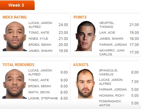 Jamon Lucas, component al echipei Anadolu Efes, Istanbul, a fost desemnat cel mai bun jucător al celei de-a 3-a serii de meciuri din playoff-ul Euroligii masculine de baschet. El și-a ajutat echipa să obțină prima victorie în această fază a competiției, scor 83-72, în fața lui Olympiacos Pireu.