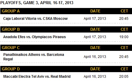 Euroliga masculină - Playoff, Meciul 3 - Program