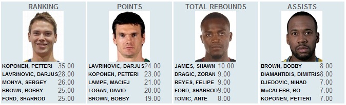 În 30 minute de joc, Koponen a avut 4/4 la aruncările de două puncte, 3/4 la trei puncte, respectiv 6/6 la linia de pedeapsă pentru un total de 23 puncte. A adăugat 7 pase decisive, 2 recuperări cu o posesie pierdută pentru un coeficient de 35 la eficiență.