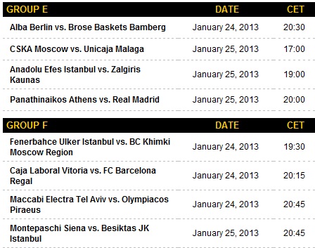 Euroliga masculină - TOP 16: Etapa a 5-a - Program