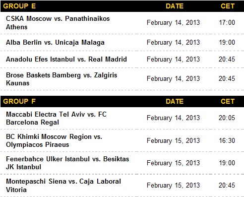 Euroliga masculină - TOP 16, etapa a 7-a - Program