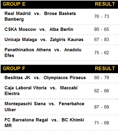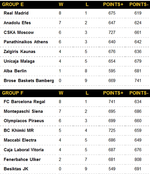 Euroliga masculină - TOP 16, etapa a 9-a - Rezultate și clasament
