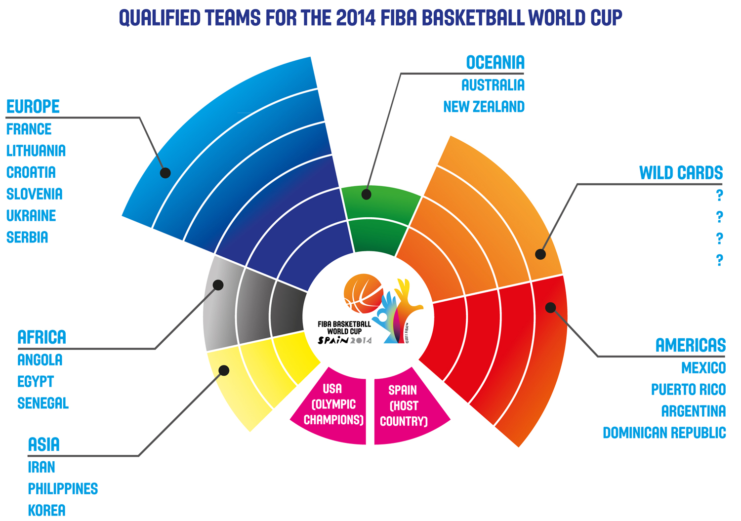 Pentru Campionatul Mondial din 2014, FIBA va oferi în 4 wild carduri pentru care se bat 14 țări. Bosnia și Herțegovina, Brazilia, Canada, China, Finlanda, Germania, Grecia, Israel, Nigeria, Polonia, Qatar, Rusia, Turcia și Venezuela așteaptă o invitația la cel mai important eveniment baschetbalist la anului, care vizează echipele naționale.