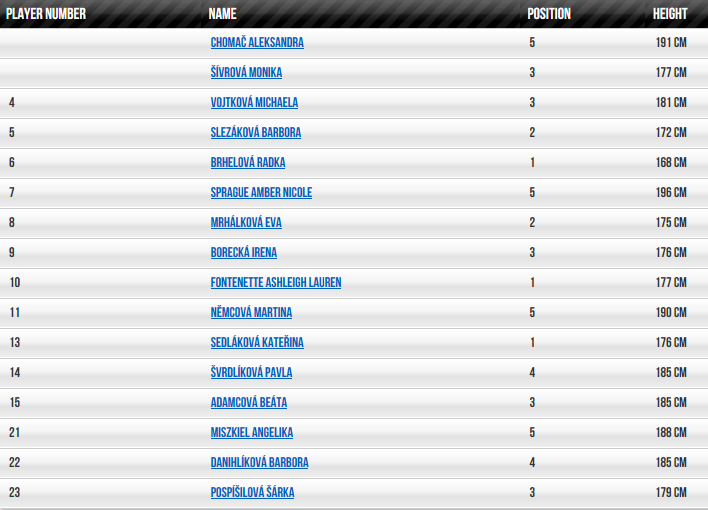În campionatul Cehiei, gruparea din Brno se află pe poziția a 7-a, cu 10 succese acumulate și 12 înfrângeri suferite în acest sezon. Echipa antrenată de Marian Svoboda are în componență 5 straniere, dintre care 2 sunt americance, 2 poloneze și o slavacă.
