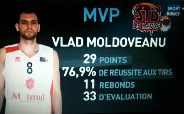 Vlad Moldoveanu a fost desemnat cel mai bun jucător al etapei a 24-a în sezonul regulat al LNB Pro A, primul eșalon din Franța în baschetul masculin. El a avut o contribuție majoră la victoria asupra lui JDA Dijon, scor 89-82, în deplasare.