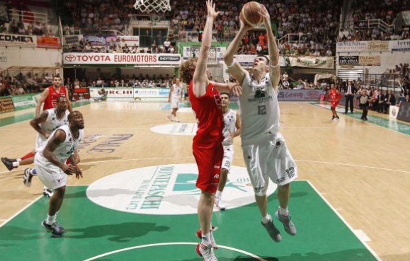 Montepaschi Siena s-a desprins în finala ligii italiene de baschet masculin - ediția 2011/12. Meciul 2 al seriei cu Emporio Armani Milano, care se desfășoară în sistemul cel mai bun din șapte meciuri, s-a încheiat cu scorul de 86-58.