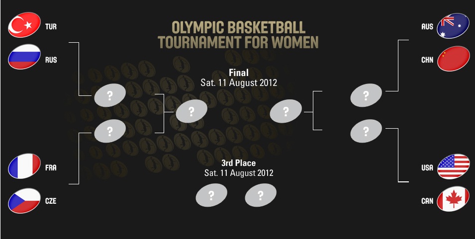 4 ani în urmăÎn urma rezultatelor consemnate în cadrul ultimei runde din faza preliminară a concursului de baschet feminin de la Jocurile Olimpice s-a ajuns la următoarea configurație a tabloului pentru fazele eliminatorii.