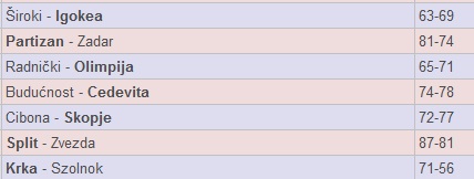 Rezultatele complete ale primei etape din sezonul regulat al Ligii Adriatice - ediția 2012/13: