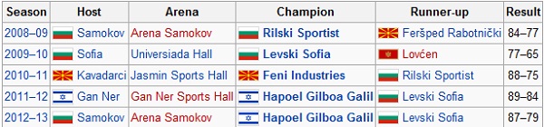 De notat că în 2012 aceleași cluburi au jucat finala BIBL, găzduită în Israel. Lista celor cinci finale de Liga Balcanică desfășurate până în prezent: