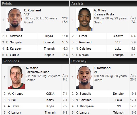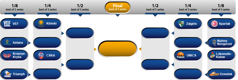 Au părăsit competiția Enisey Krasnoyarsk (6-12), CEZ Nymburk (5-13), Tsmoki Minsk și Neptunas (ambele cu 3-15).