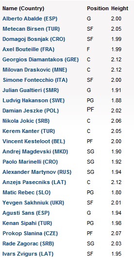 4 ani în urmăFIBA Europe a anunțat lista celor 24 de jucători U18 selectați să joace la meciul demonstrativ devenit un obicei și care se dispută cu regularitate în preziua finalei EuroBasket 2013 în sala în care este programată finala continentală.